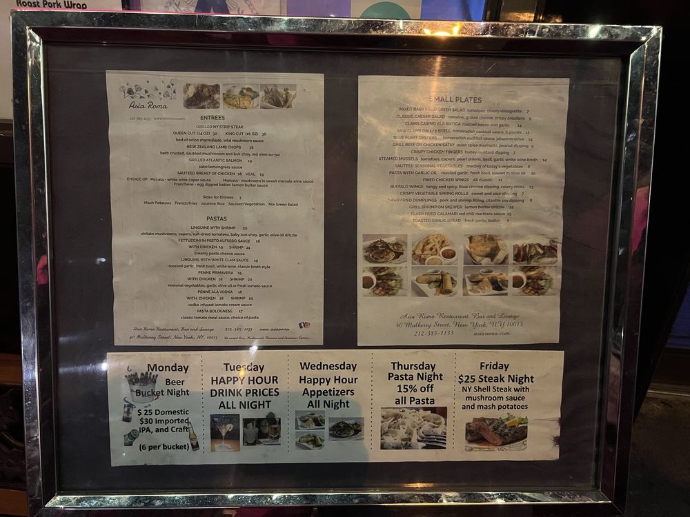 Located at 40 Mulberry St, New York, NY, Asia Roma is a hidden gem in Chinatown that skillfully blends Asian flavors with a vibrant karaoke ambiance. This casual bar invites diners to enjoy a diverse menu, featuring delights such as the Grilled New York Strip Steak and Grilled Atlantic Salmon, each crafted with care and a twist of fusion creativity.